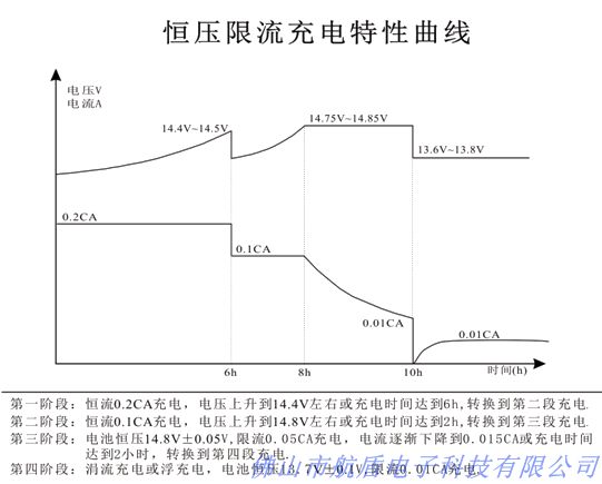 ◇ 蓄电池的容量放出70%以上或总使用时间超过70%就应对蓄电池及时进行充电。充电方式如下(图为12V电池充电特性曲线,6V或8V电池相应折算):