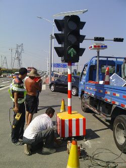 移动式太阳能交通信号灯是新一代高科技交通应用产品,是科技强警的一项成果。采用高亮度LED作为发光源,安全、节能、可视性强、安装简便、使用寿命长、工作稳定可靠、不敷设电缆、不消耗常规能源、广泛应用于公路安全交通警示和导向,可有效地解决各主要干道上的交通信号指挥系统因停电或施工而造成交通拥堵的局面,维持正常的交通秩序,预防交通事故的发生。
